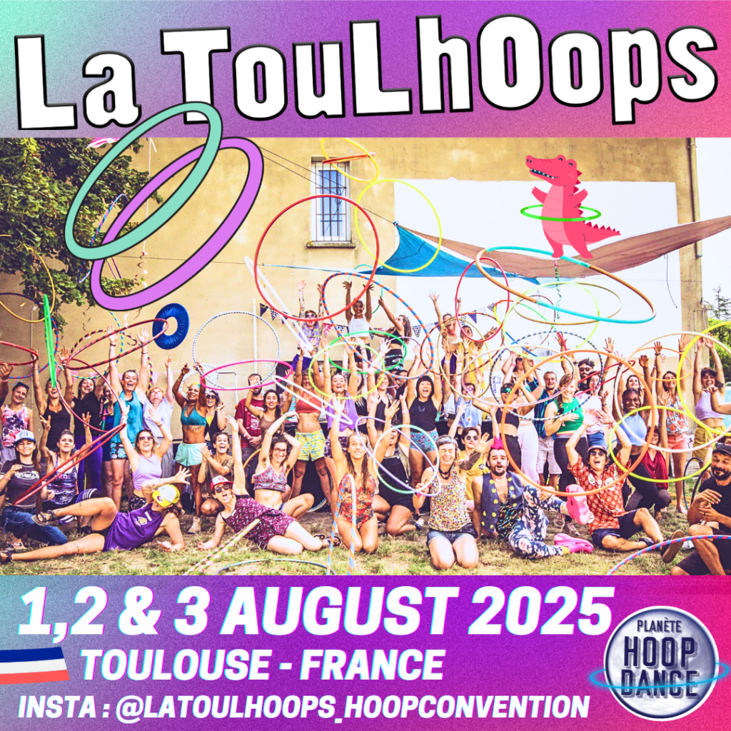 La ToulHoops annonce sa 5eme édition ! C’est cet été les 1,2 et 3 août 2025, c’est la convention toulousaine de Hoop Dance : Ateliers, fête et rencontres organisé par Croco fumé. 3 jours de partage et de folie autour de la HoopDance avec : HoopWorkshops intenses, HoopJam, HoopYoga, HooParty, HoopShow, HooProjection & HoopinGames ! https://bit.ly/latoulhoops5